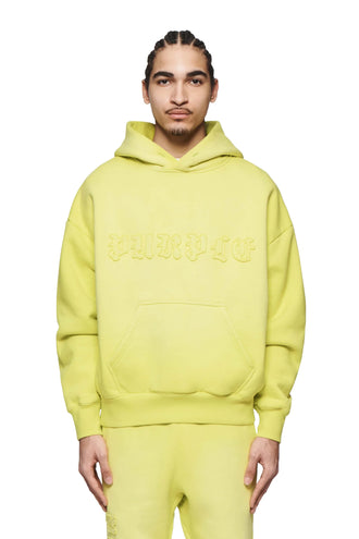 This core hoodie is defined by gothic Purple Brand logo lettering across the chest. It’s cut for an oversized fit from green heavyweight fleece, and features a large kangaroo pocket as well as ribbing at the cuffs and hem.