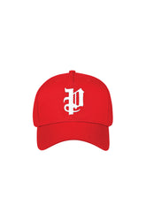 Featuring a gothic Purple Brand monogram, this red cotton twill trucker hat has a classic five-paneled design with a curved visor and tonal stitching.