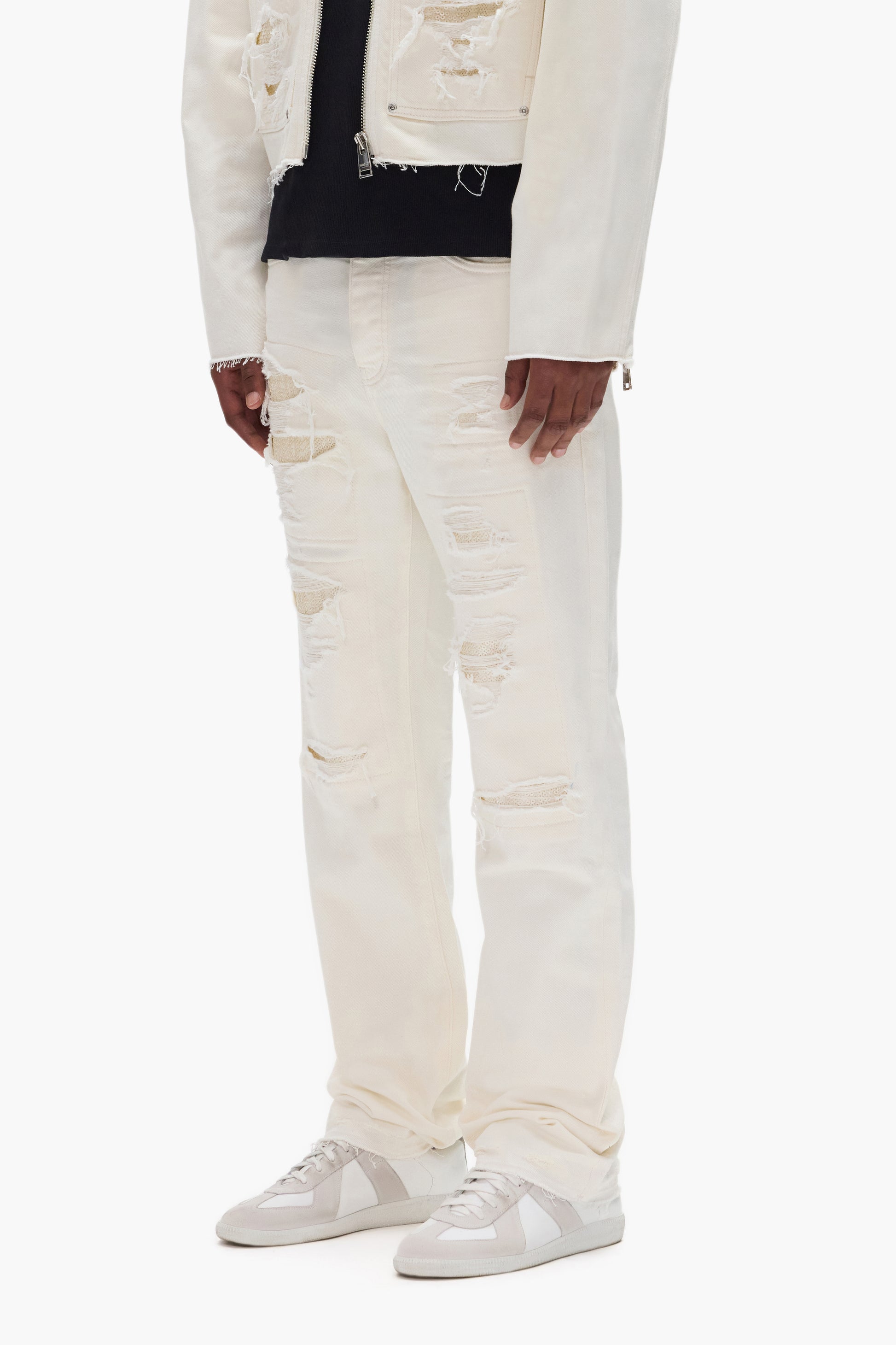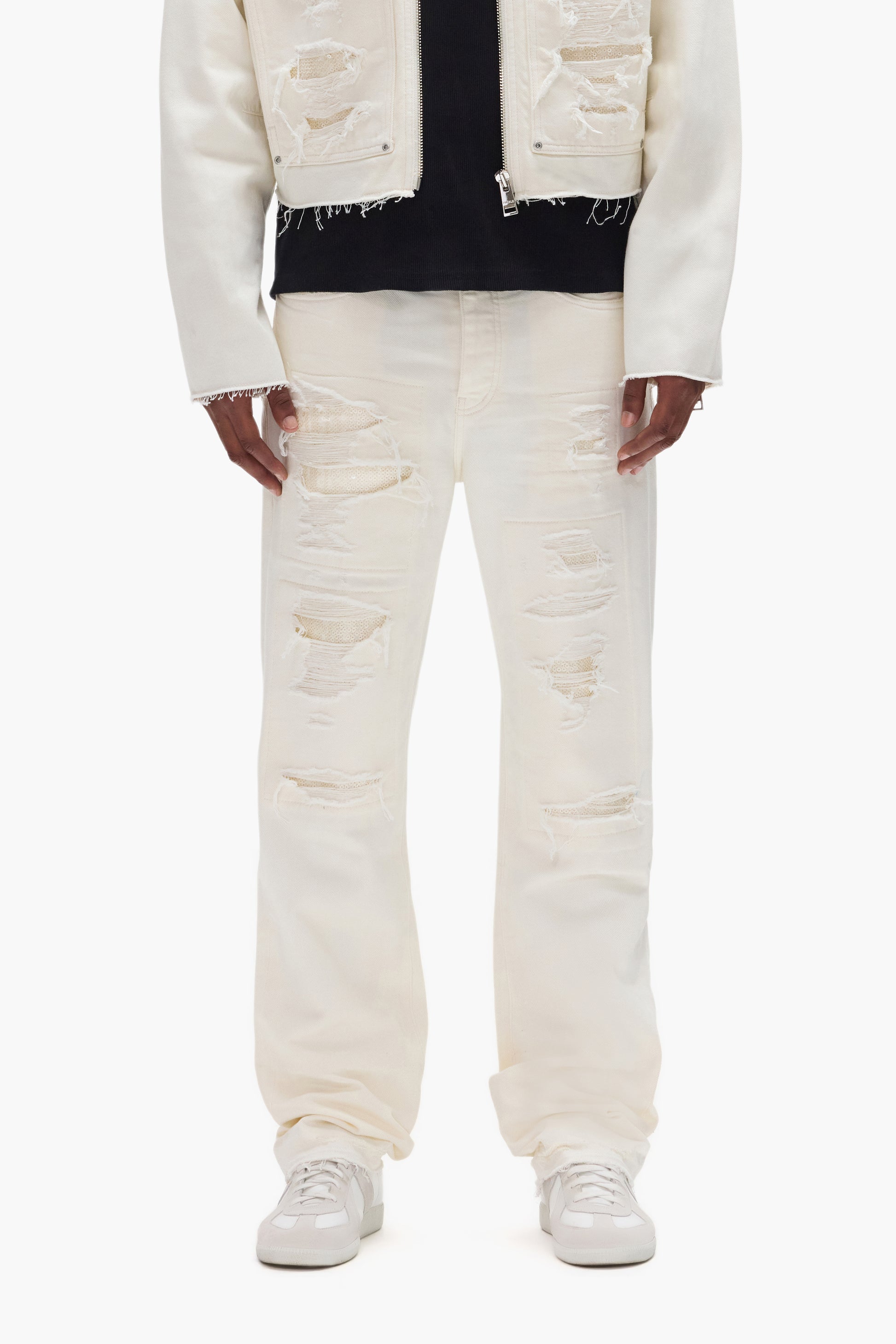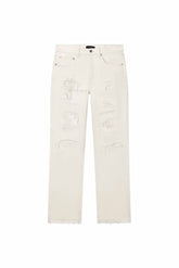 Each jean is packaged and secured with ties to preserve custom details like our the 3D wrinkle effect or custom paint finishes while shipped.